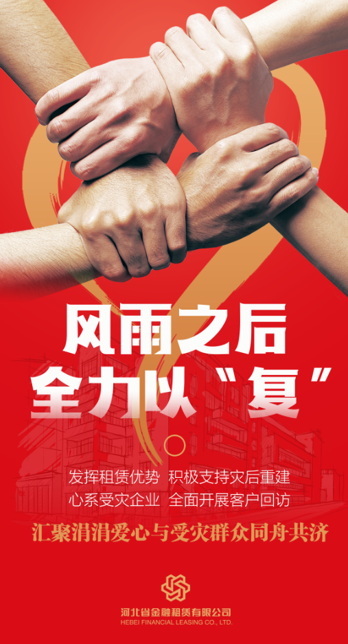 風(fēng)雨之后,是災(zāi)后重建的關(guān)鍵時期。河北省金融租賃有限公司(以下簡稱“河北金租”或“公司”)全力落實各級政府及監(jiān)管部門的決策部署,及時出臺針對性政策,迅速投身災(zāi)后重建工作,積極幫助受災(zāi)地區(qū)企業(yè)解難紓困,以實際行動踐行金融工作的…
